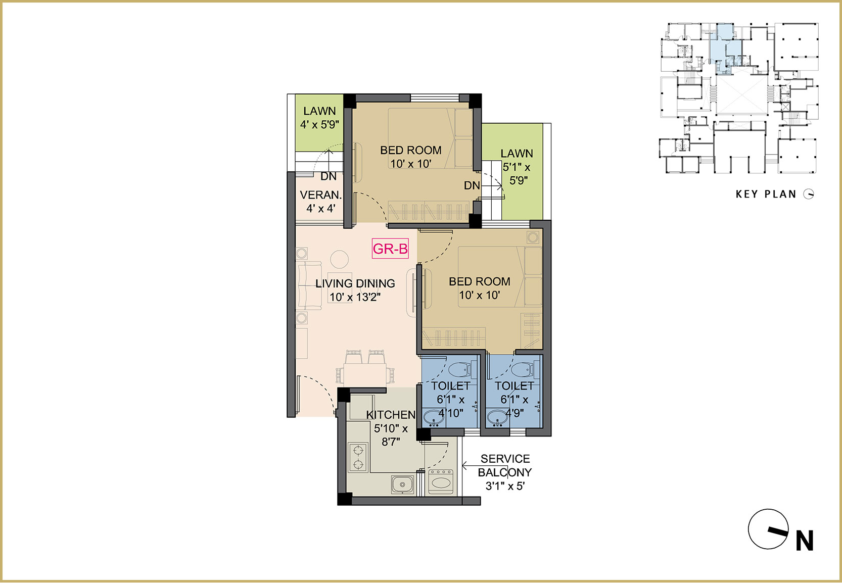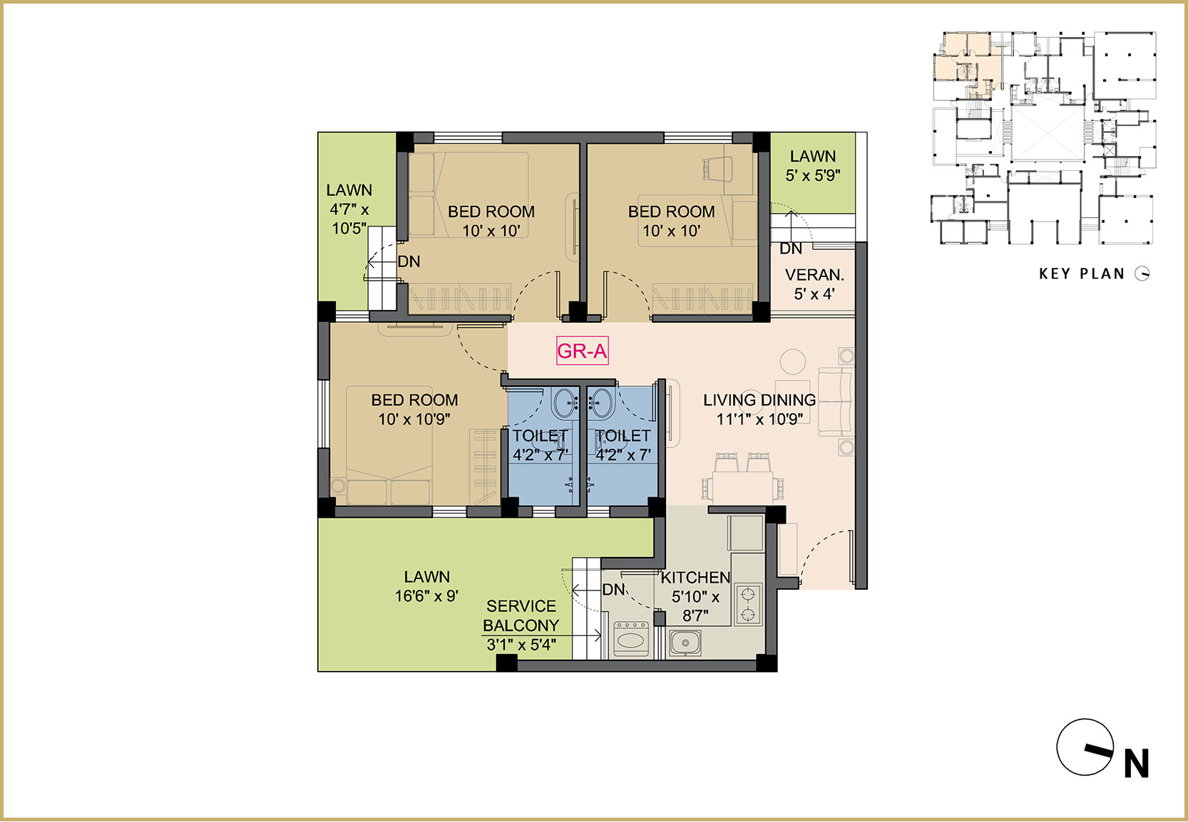 - Vitrified tiles in bedrooms, living, dining, balcony and kitchen. Granite Counter in kitchen. Anti-skid vitrified tiles in toilets